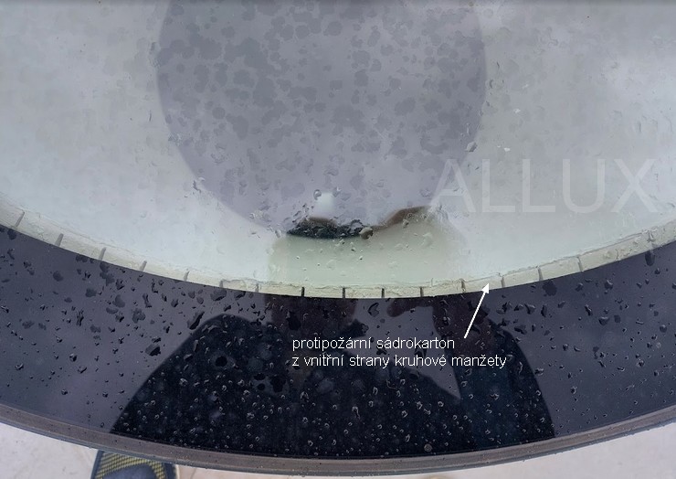 - manžeta bez sklonu – ukázka zapracování kruhového světlíku do střešního pláště
